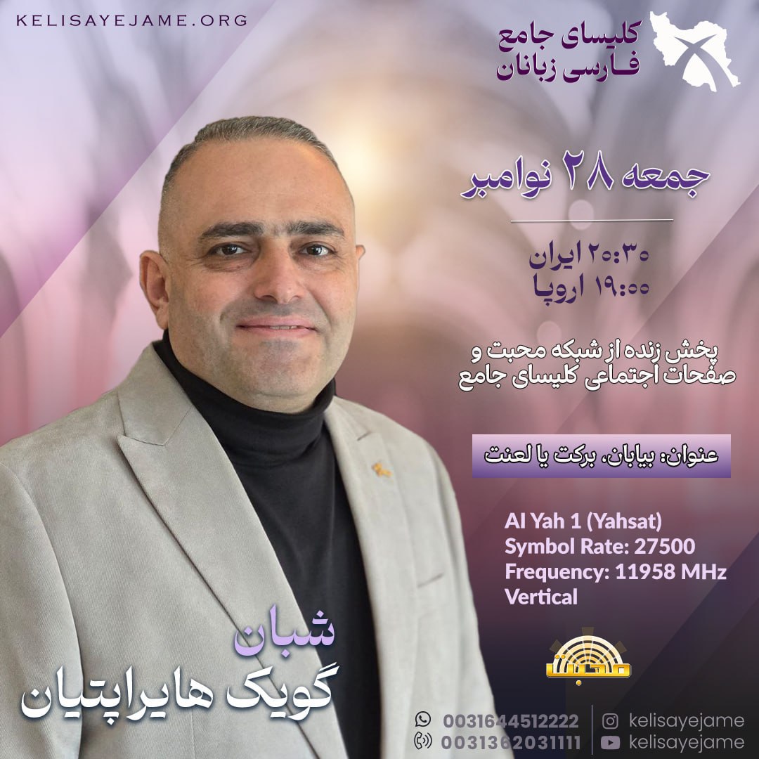 محمد پناهی2025-10-18 23:29:312025-10-22 23:33:1821 نوامبر 2025 – کشیش جلیل سپهرجلسه دعا و پرستش یکشنبه ها