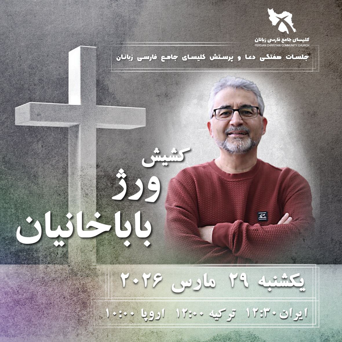 زمان جلسه دعا و پرستش : یکشنبه 29 مارس 2026